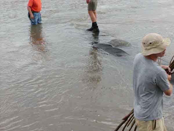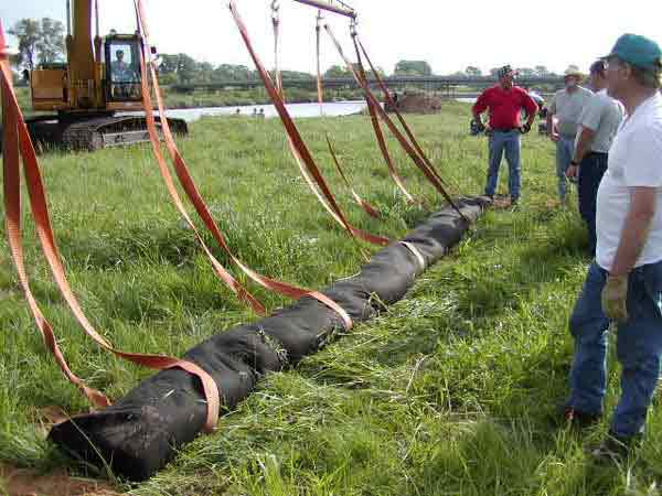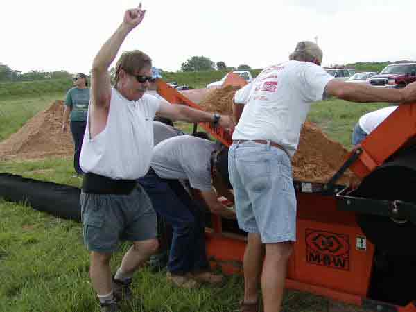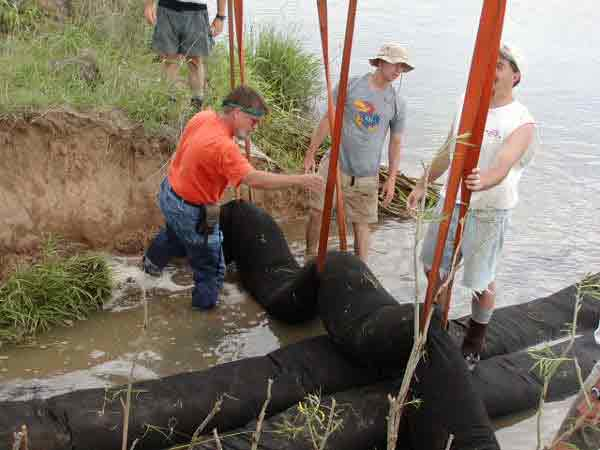 -Vicksburg, MS, Phil Balch KSCC, and volunteers help guide the geoberms into place.