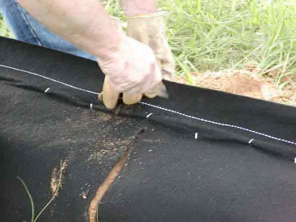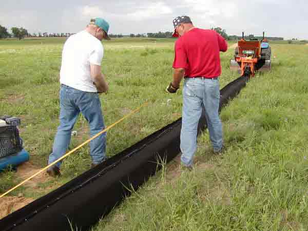 "Hog" staples and a seed bag sewing machine was used to close bag. Bags were made up to 30' long.